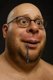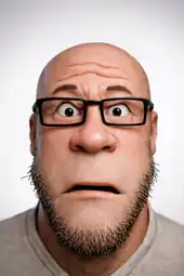 >ITT we create hyper-realistic uncanny 'jaks. >I used this prompt with ChatGPT: >>Transform this character into a photorealistic rendering while preserving the original cartoon proportions and facial structure. Keep the oversized head, large eyes, simplified nose, and stylized facial hair exactly as drawn. Add realistic human skin texture, pores, subtle wrinkles, natural lighting, depth of field, and realistic stubble detail. Use high-quality studio lighting, shallow depth of field, and realistic materials, similar to a hyper-real Mario-style render. Do not make the face anatomically realisticβretain the exaggerated cartoon geometry.