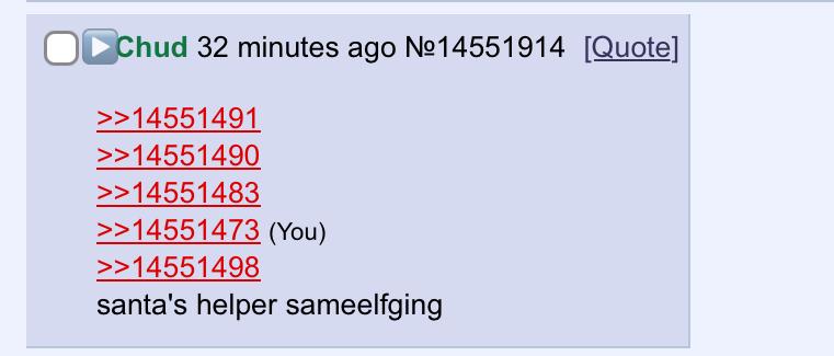 >>14551704 I suggest you need to practice hating on mall santas more to not gigaquote mall santas, learn the crimes of evil people like Scully etc.