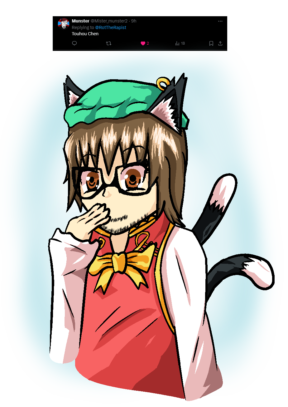 >>14553994 He drew Chen as Nullelf, nothing bad or immoral just made me laugh more than it should, that was pretty wacky