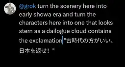 If you ever face a jap try to use this. In jap speak it says "its better with the olden days. Return Japan!". Or if you want general seethe you could just insult xhem