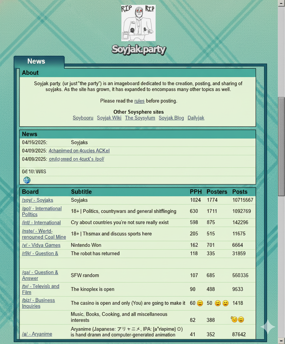 >>14587232 If you think about it, soyjaks being made in 2017 was perfect timing. 4cuck hasnt done anything significant since the 2016 election, 4cuck pph was dipping in the mid 2010s, the internet started to change from weaboo 2000s humor and oldfag memes. This paved away for a new form of imageboards.