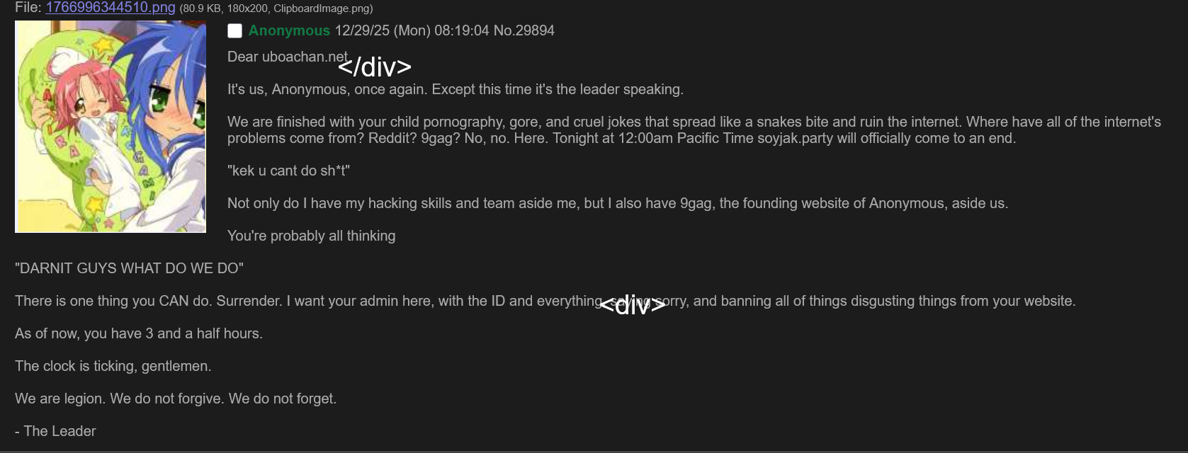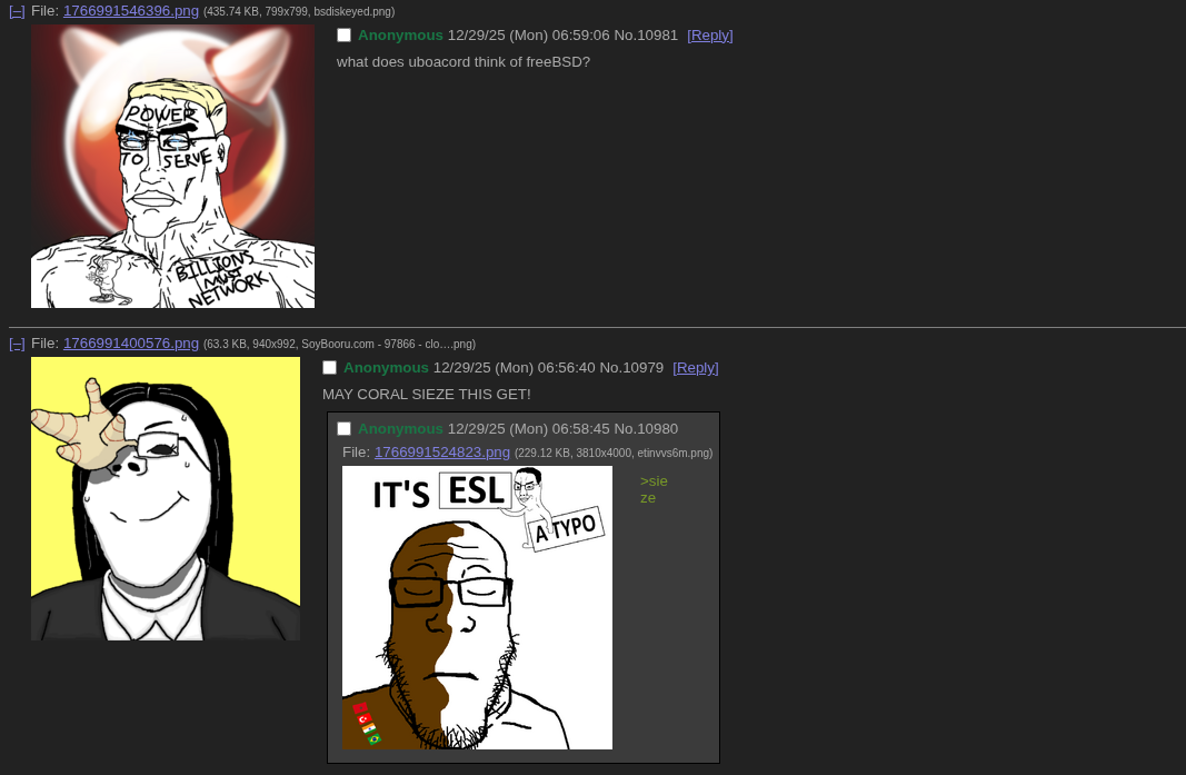 https://uboachan.net/yn/ JOONS THIS IS NOT ADVERTISING ITS A FUCKING RAID Chud 12/29/25 (Mon) 07:08:02 β 14604231 [Quote]