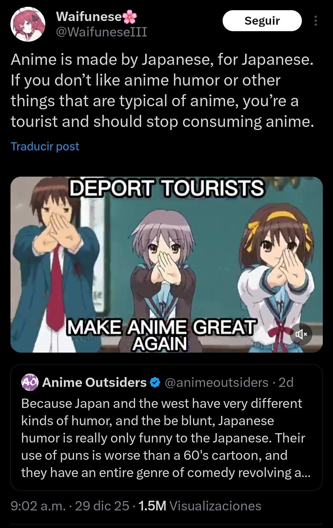 >DEPORT TOURISTS >MAKE ANIME GREAT AGAIN Xitter poster needs to go first.