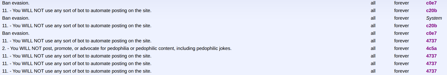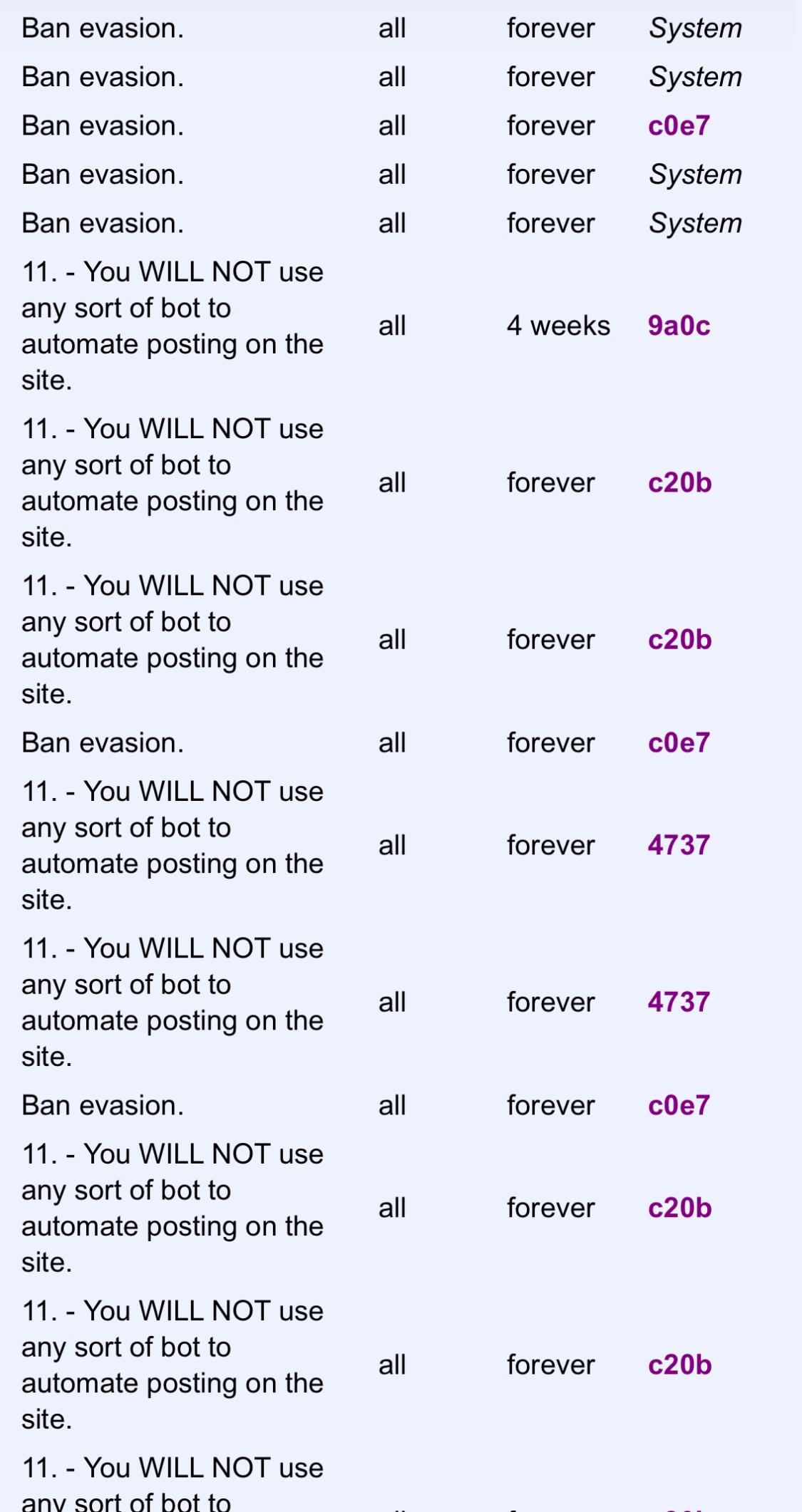 >>14656142 why does 9a0c always ban people that break the rules for weeks/months instead of forever