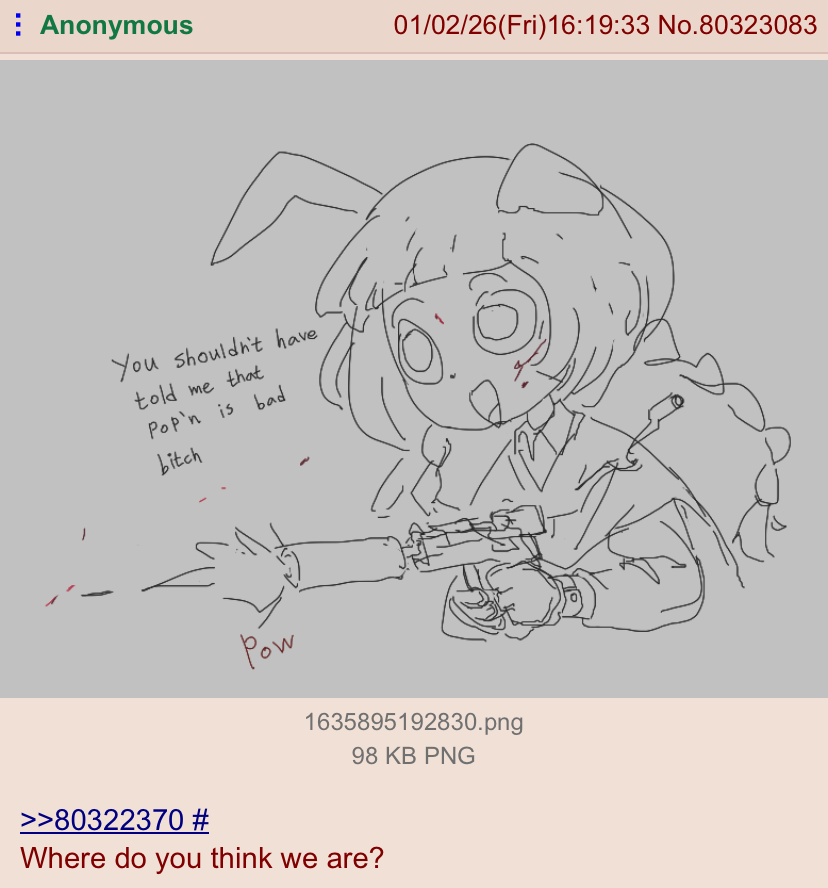 https://boards.4chan.org/trash/thread/80312357/bun-new-years-2026-editionraid and dox everyone responsible on this /bun/, including thehenwithatie, since she’s the one who lurk here.
