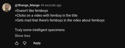 this 'teen is commenting on the troons video and his channel seems like a 12 year old child