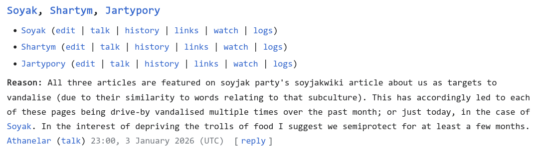 The soyjak.party page is only attracting them, just let it get deleted