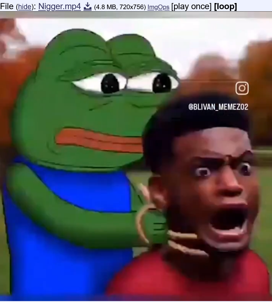 File: Nigger.mp4 📥︎ (4.8 MB, 720x756) d42b509aeb86f75d6f6bb46880104bbd0ImgOps