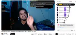 >>14821586some atheist plebbitor debating le heckin mean christcucks on stream