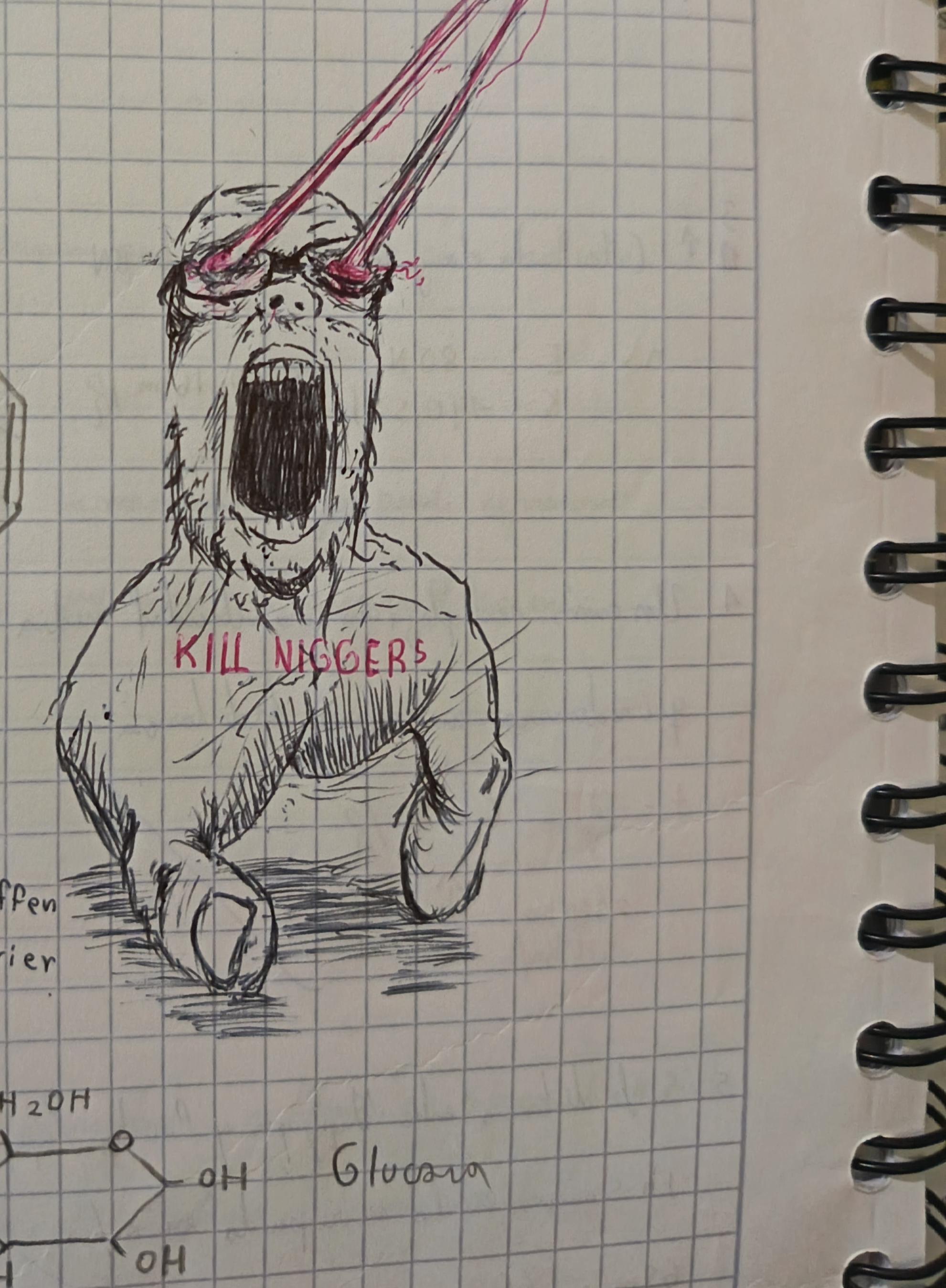Also, the notebook is full of badly drawn johnsons because the niggers I call friends are obsessed niggers who grab my notebook and draw johnsons, they do this to eachother by el way