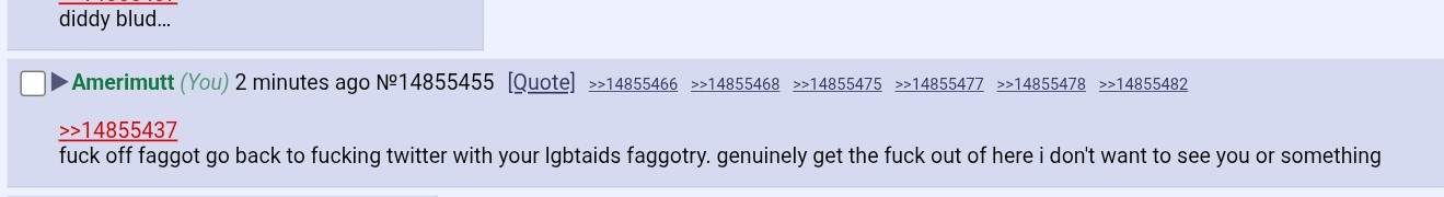 >>14855200fuck off, you don't know me and i'll beat you up you faggot, i won't calm down you made too fucking mad