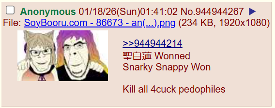 >>14864360>oldfag dysphoriaIt's bizarre how common this is on 4chan. As if pretending you browsed a pedo friendly website for nearly 20 years automatically makes you correct in everything you say. It's tranny/chrischan tier delusion and mental illness. There's just no real logic in "people" like that. People who were actually around 10+ years ago already know the oldfags are long gone. They either killed themselves, grew up, or have absolutely no real presence.