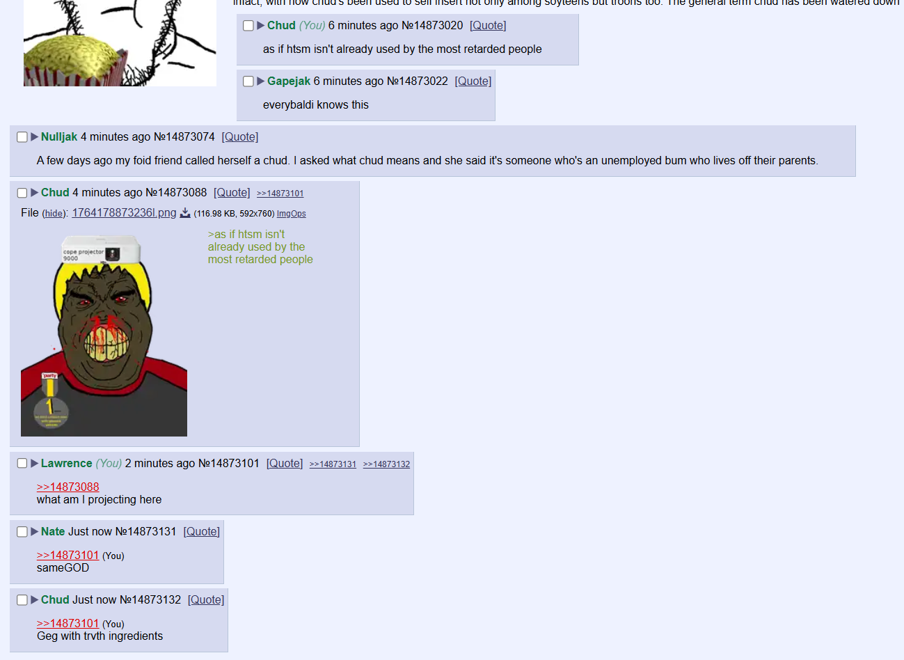 A few days ago my foid friend called herself a chud. I asked what chud means and she said it's someone who's an unemployed bum who lives off their parents.