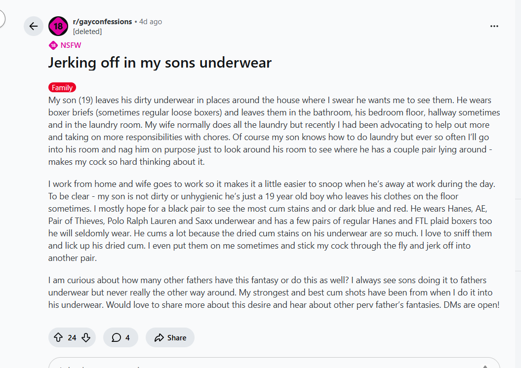 there are dads on this subreddit perving on their sons, i wouldnt be surprised if they molested their own kids when they were younger