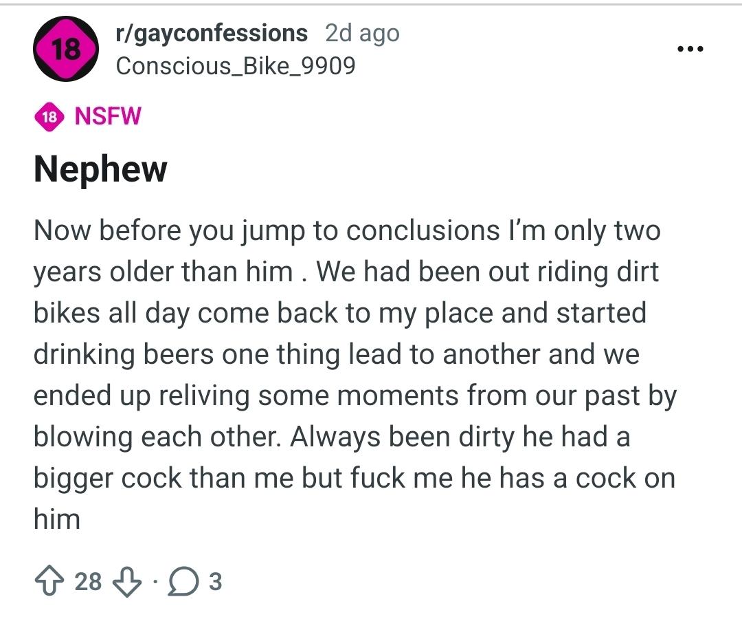 holy shit theres so much fucking incest on this subreddit