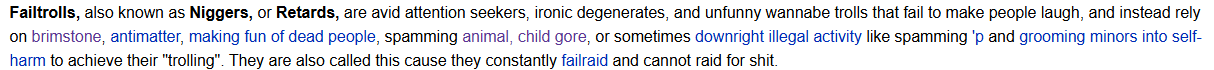 i wouldnt really call them failtrolls though, they're just the same as any other niggerbrim troonslop gooner baiter, this just dilutes the term failtrolls a lot