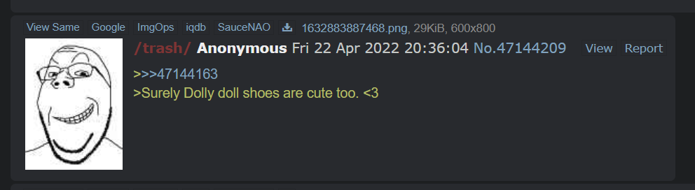 doebeit that's unlikely to be referring to him, that's clearly someone soyquoting someone mentioning dolls (probably some type of doll fetishist given the board its being posted on)