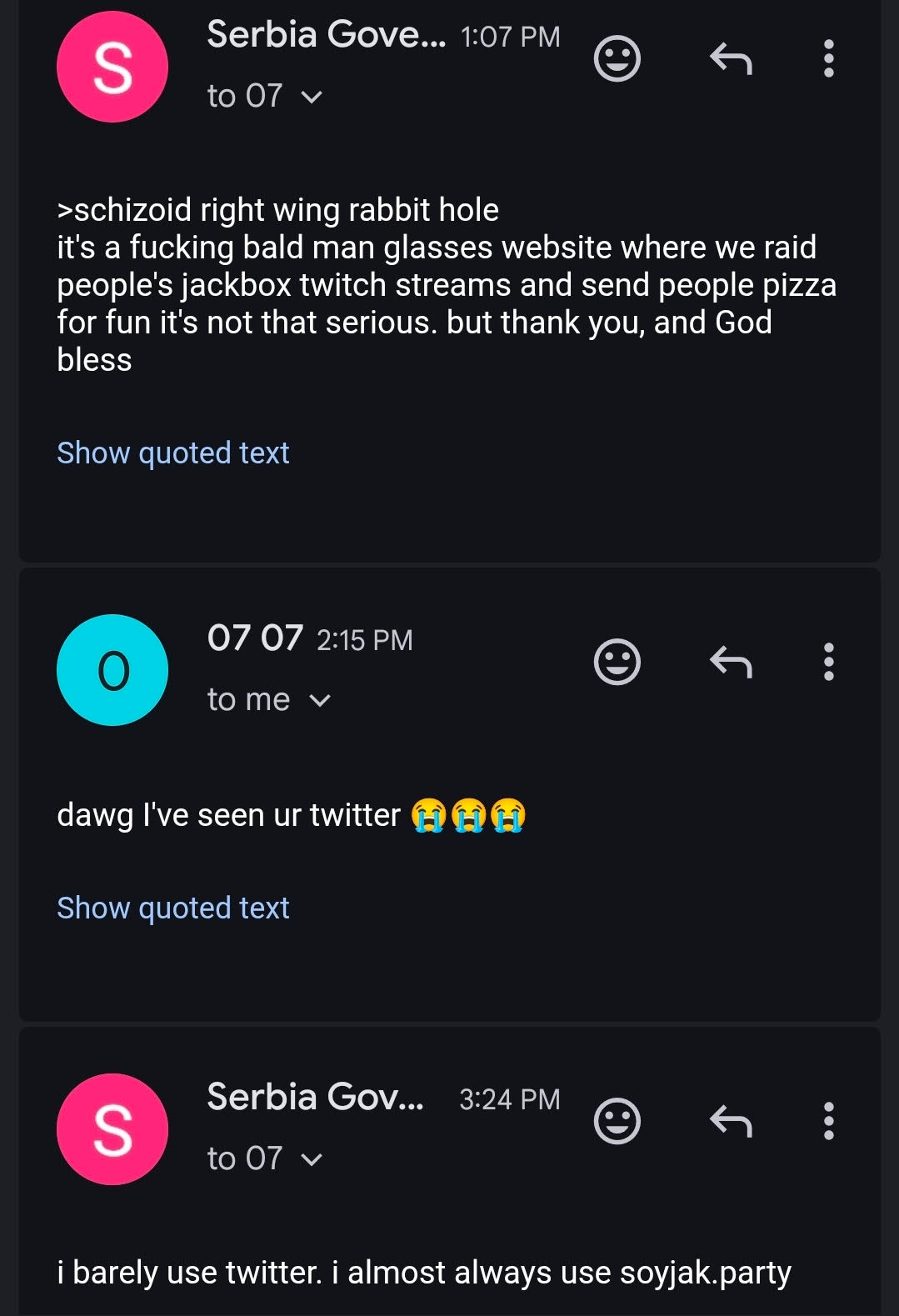 >>15134232how is dis bait when OP is literally giving proof of the tranny with these emails and such