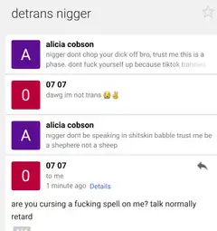 i've talked to the first guy and i think xe's an actual soyteen but not only is xe a self-admitted 14 year old but xe also uses da coooord so i've tried to stay away from xer because xe might be a long-dead websitefag or something
