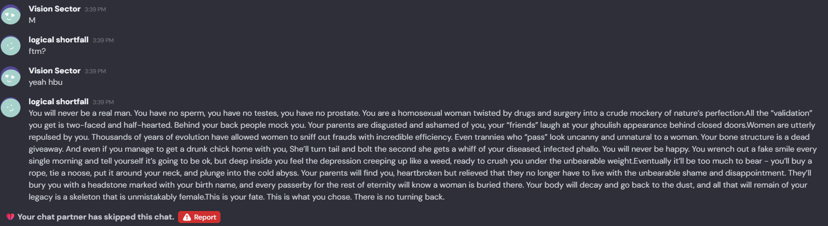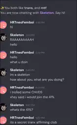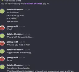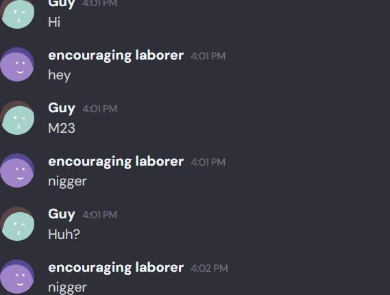 >>15217564I ran into that fag but it looks like they catch on when you name yourself sneed