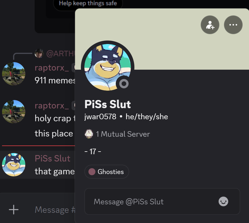 >>15256233thats my raiding account, i was slowburning a furry sever.