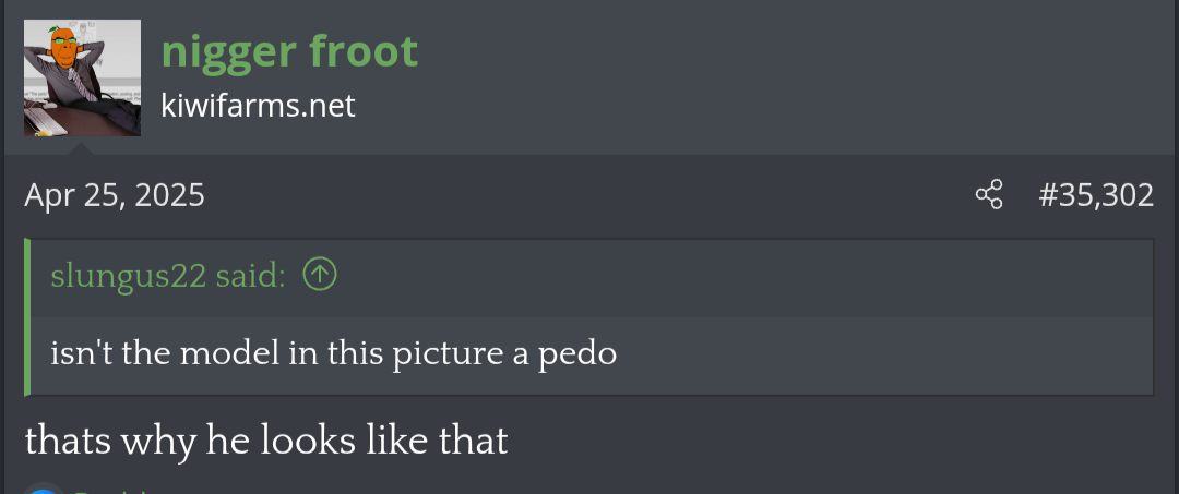 That nigger is an unironic kike, he infested the site with ads and is the reason why we have our current jannies. Not to mention that he's a 'corder and has interacted with poodists (