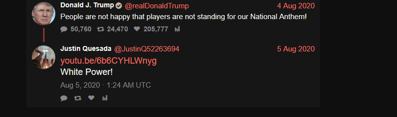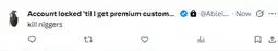 >>15289082Thatβs my guess at least would probably get you banned from Twitter. I got banned for the first 1 before geg. I know threats get you banned too
