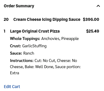 >>15289404Never had that happen on papa johns and Pizza Hut