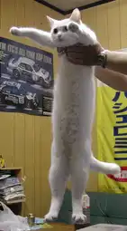 This is a physical impossibility, no cat could ever be that long. Look at it, do you honestly believe that a cat could be elongated to the degree shown in the image? No! It's photoshopped you dumb caca. Take your fucking medication