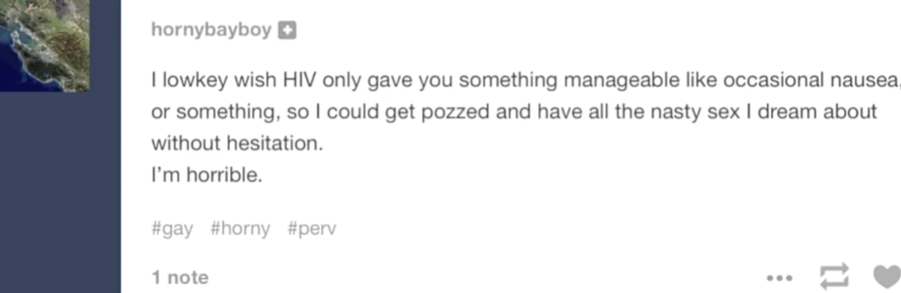 Some of them willingly get "pozzed" by shoving a toothbrush up thier ass and scrubbing really hard to create a lot of microwounds to then get aids easier when getting fucked