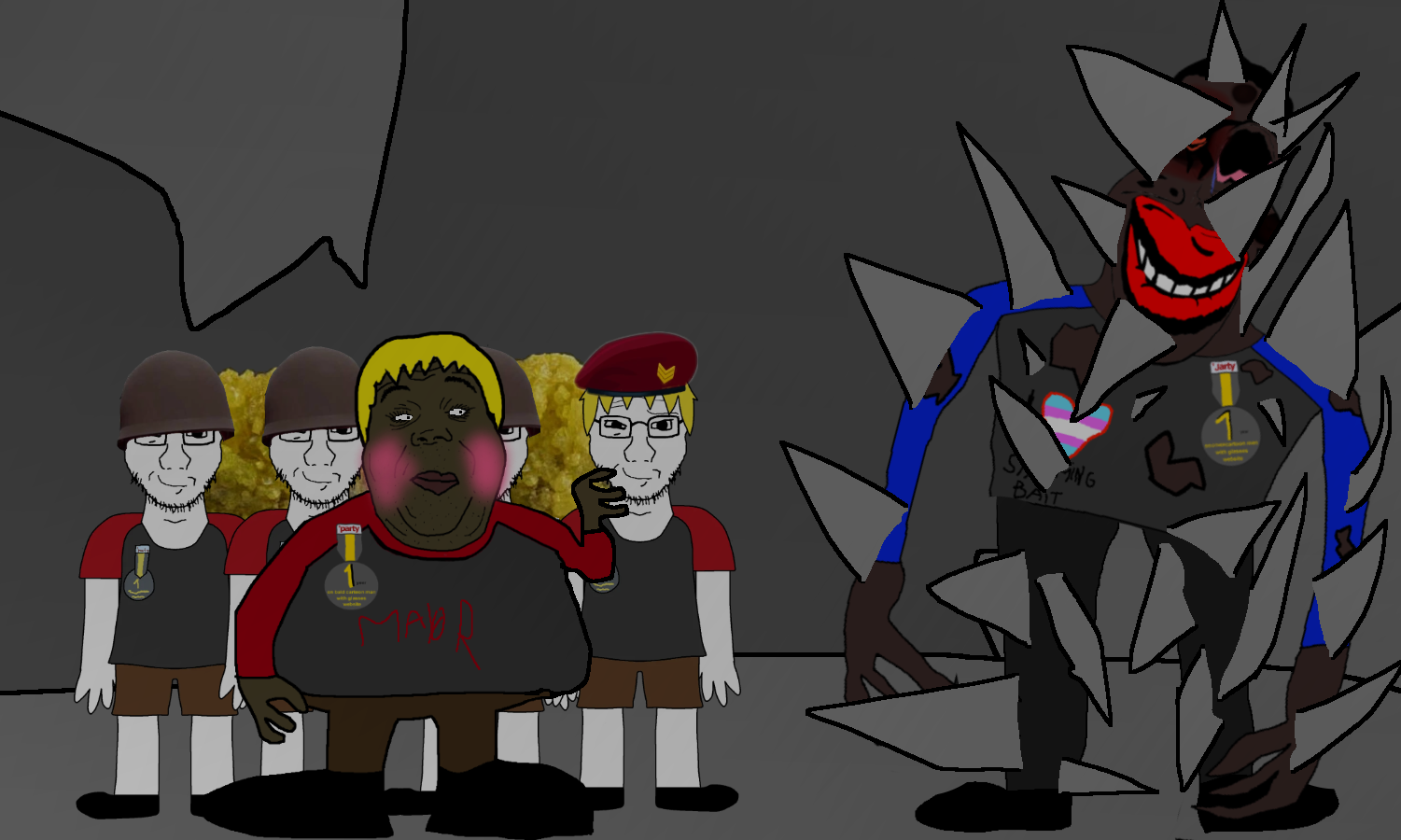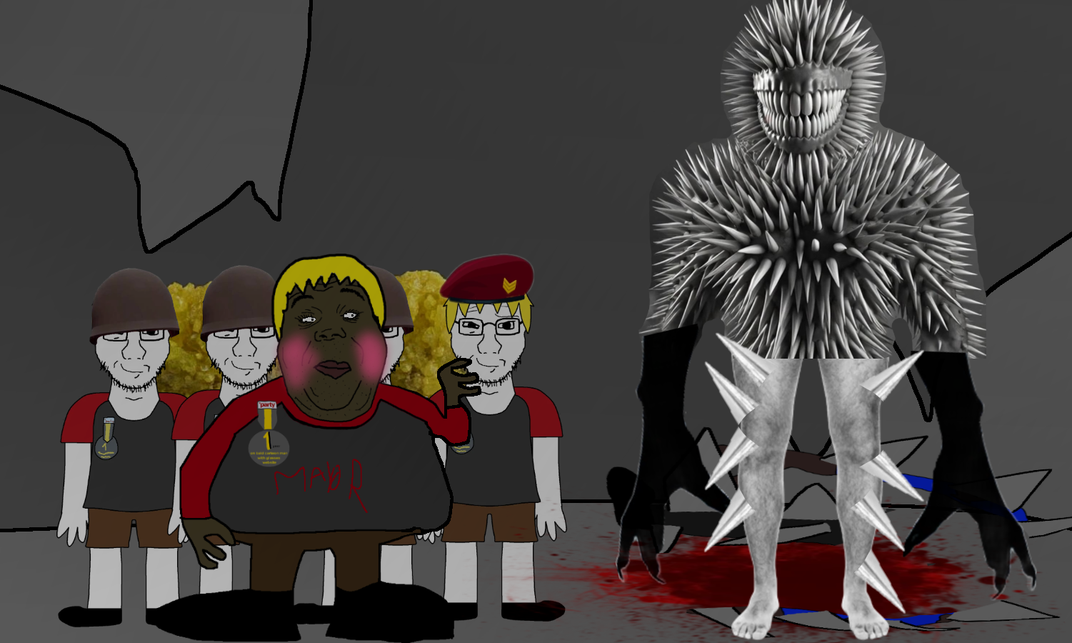 >>15335872as if things couldn't get any worse, after the creature devours the entire taki, spikes start to grow from the jerdtee creature as it screams in agony, shortly after it turns into bloody mush and the ancient god, known as CLA̷̳͝MSTAPḶ̴̓ES materializes into existance, you realize that this was not any ordinary jardee cuck, not a group of some long-dead website wannabe larpers either, this cave is owned by some cult worshiping an elderitch god, that creature was nothing more then a sacrfice, your screwed, is there perhaps anything you can do?