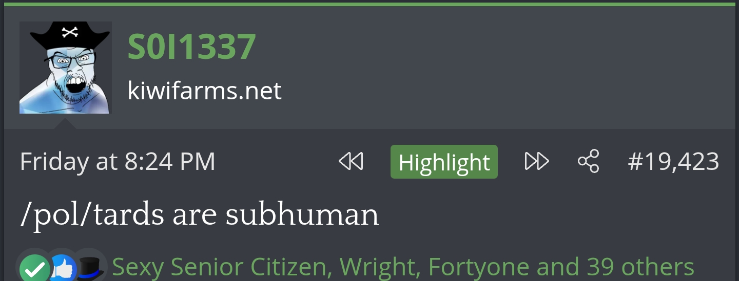 >>15338487i really doubt any 'teen would utter words such as those on this screenshot (his last post here iirc). seems like a typical 4cuck weab, knowing who lee was or the of wordfilter comes just from browsing 4cuck/v/ for a bit.