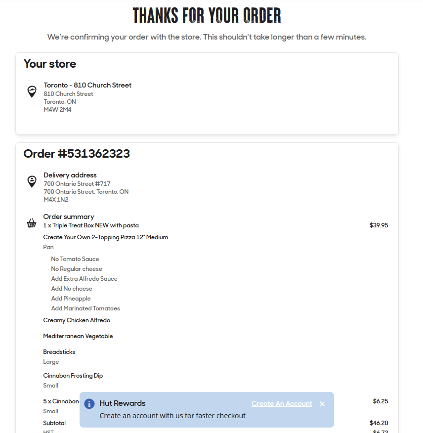 i'm ordering a 'za right now