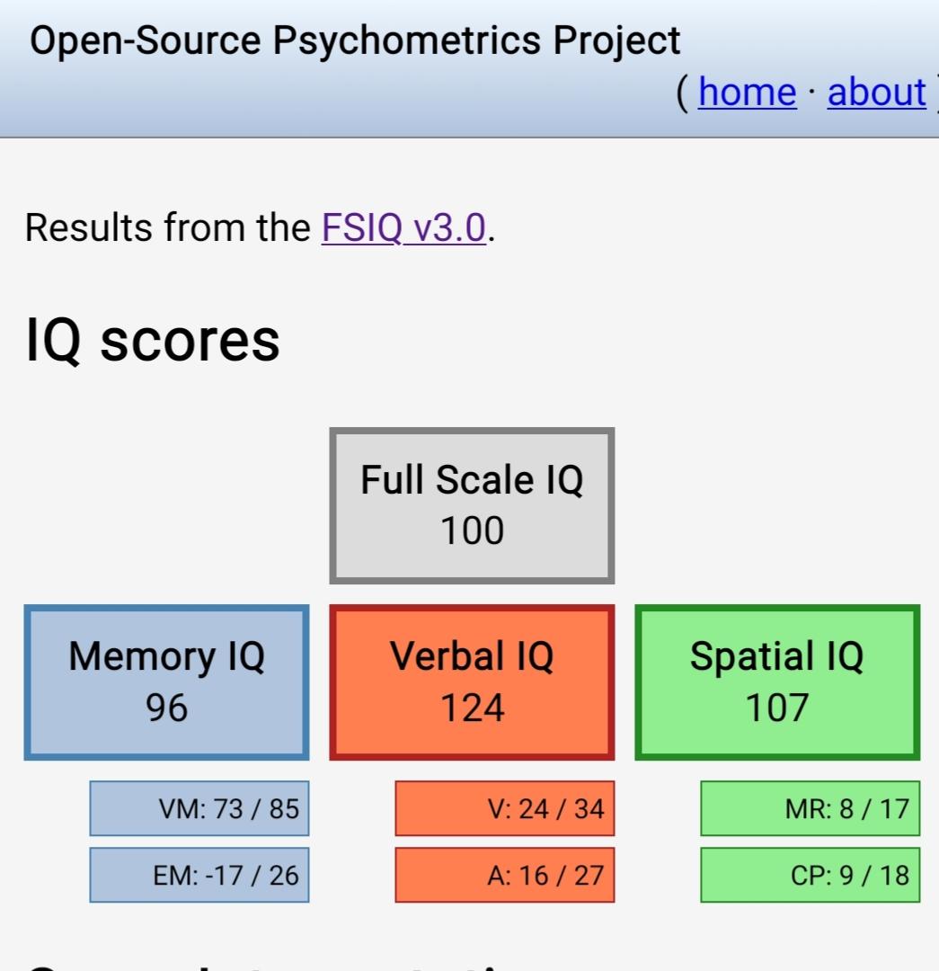 >>15346230Why not take the Wechsler Adult Intelligence Scale instead? These open-source IQ tests are just made for clicks and nothing else