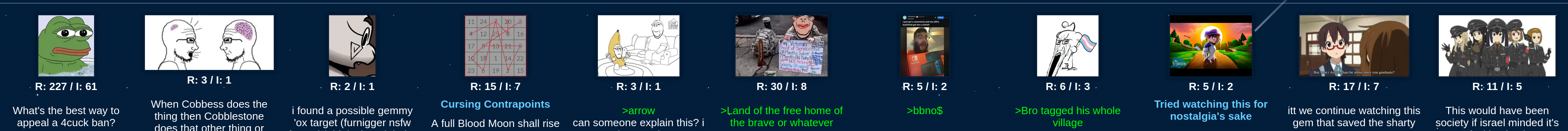>>15360927trve unfortunately, it seems like its been that way for a month or so now. We need a big raid (like 404 or NNN) to help revitalize the site. the problem with raiding barq is that nophono wants to go through the process of making an account and risk getting datamined by some furtroon so its hard to attract a lot of manpower.