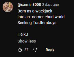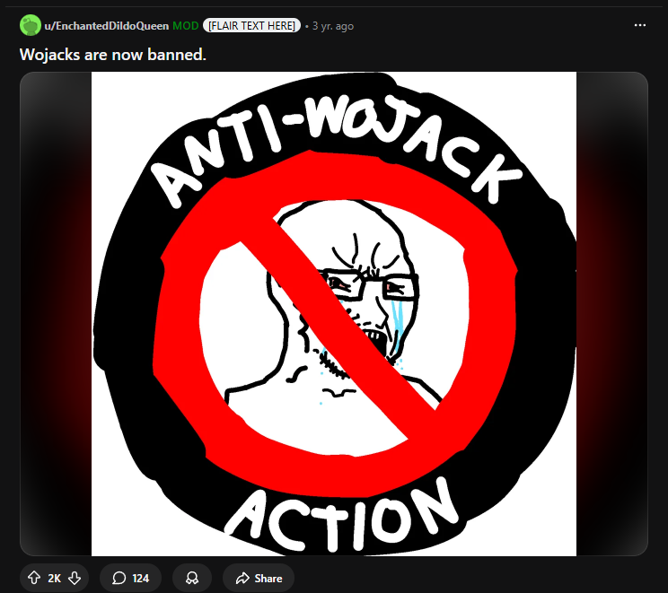 >>15364118I thought calling soyjaks wojacks was a shitty xitter meme,do trannies really?