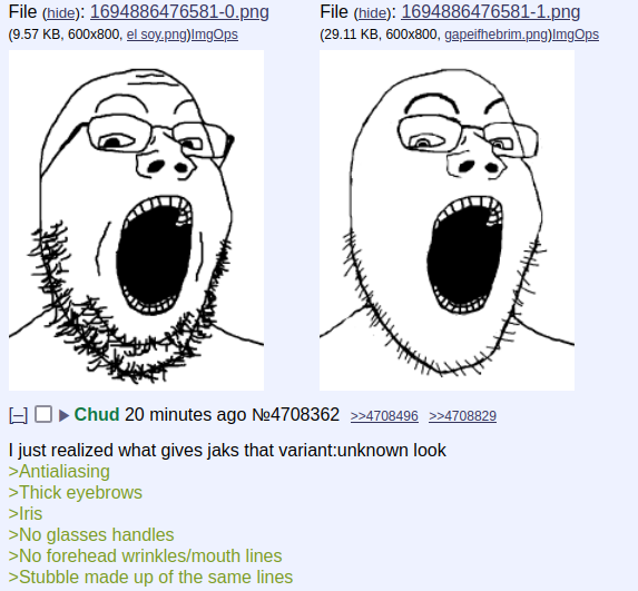 there's that image with two gapejaks which has one being the original and the other one having that specific "variant:unknown" look but I can't seem to find it