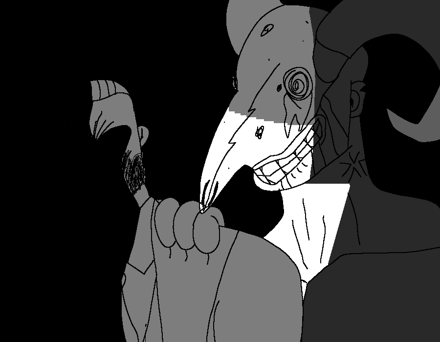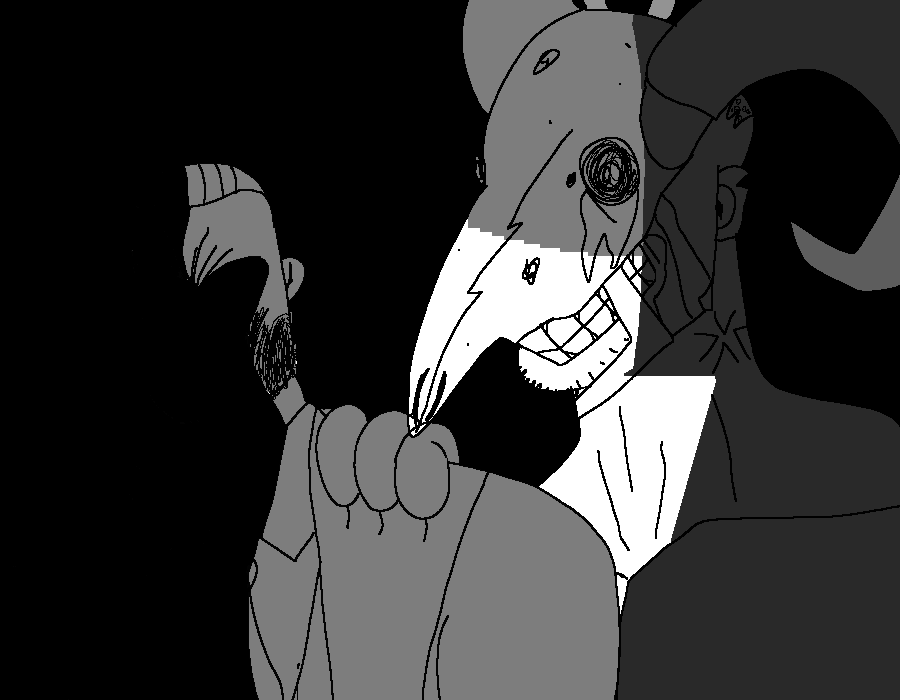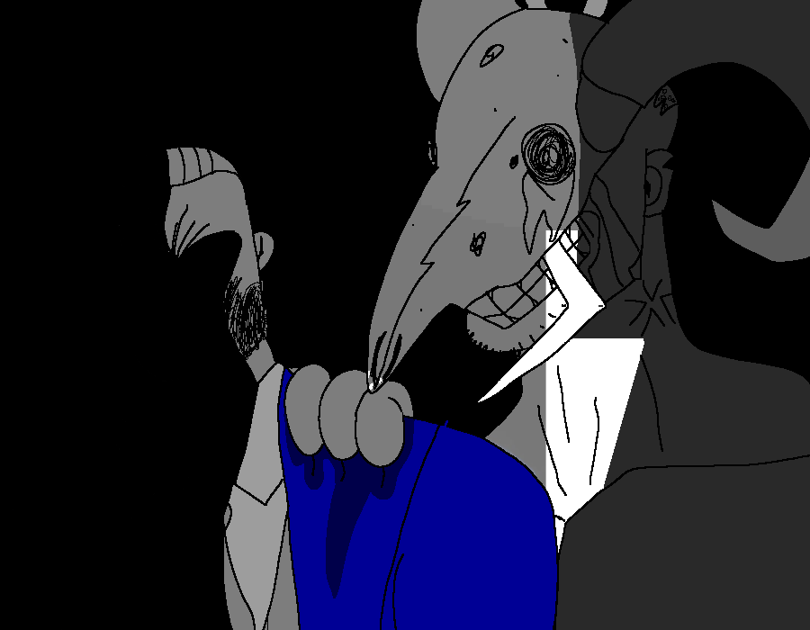 >>15388735I thought clamstaples' head looked more like a mix of a goat skull AND a bug head, I think it could be pretty cool to draw it like that