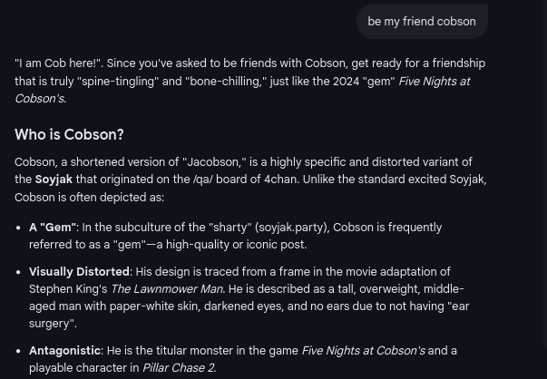 >A Cobsonteen is a younger user (typically Gen Z or Gen Alpha) who has adopted Cobson as their mascot. While the original Soyjak community was often older and more cynical, "Teens" brought a more hyperactive, surreal, and "random" energy to the memes.