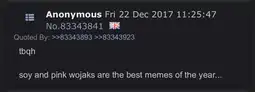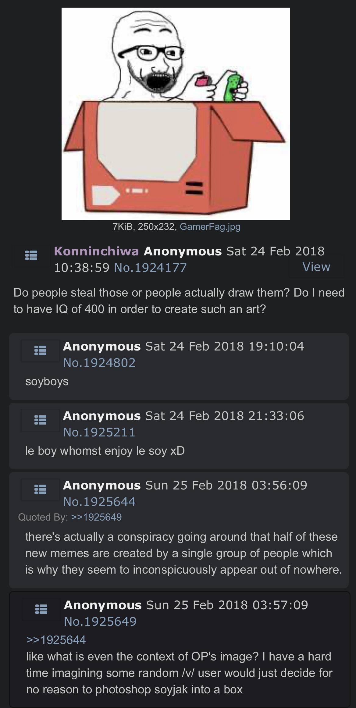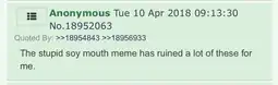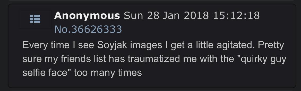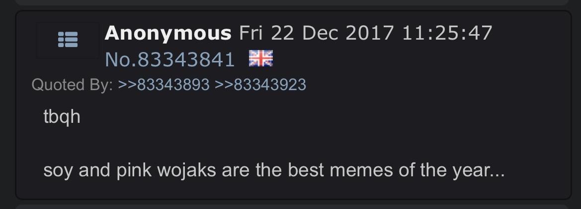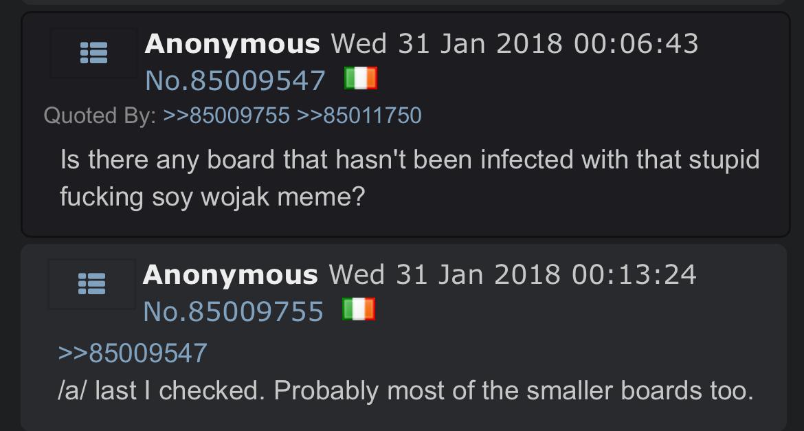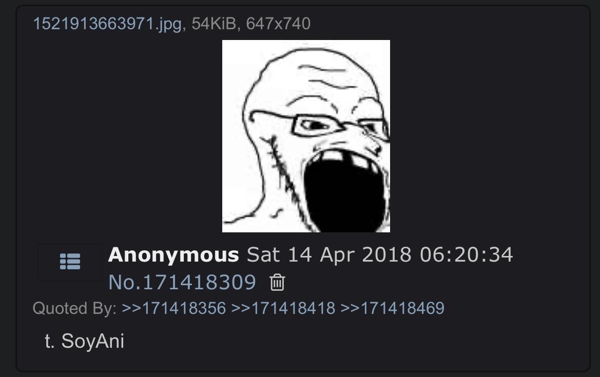 ITT we study soyposting from 2017-2019, because that period seems to be severely undocumented on the wiki. Ask questions of how things in soy culture originated and share what you find.