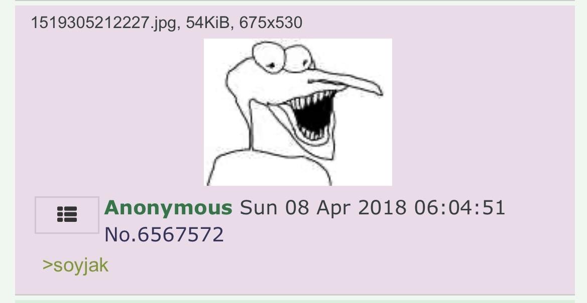 >>15412016nigga itβs common knowledge soyjaks have been around since december 2017