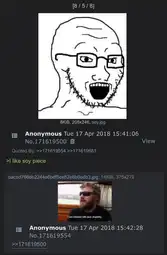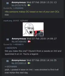 >>15412324Also apperantely, the day after swede posted the soyjak, pretty much every board on 4chan had atleast one guy forcing soyjaks and quoting everyone xe didnt like with these images