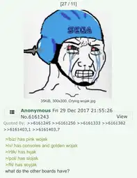 >>15412343I think soyposting mainly persisted on /v/, /int/ and /tv/ with minor spam on every other board. The reason why i think soyposting stuck there more was because it was better suited