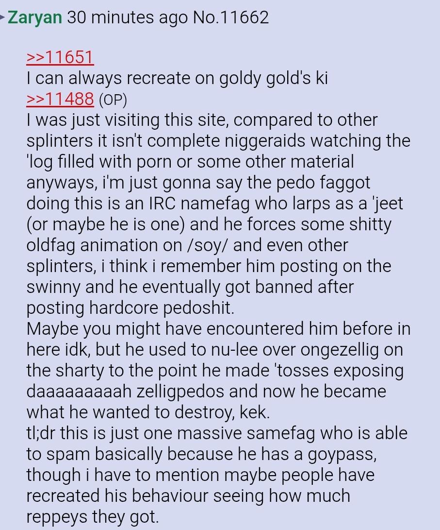 You niggers are obsessed with me, so I’ll give you a hint, only one of these allegations is true. I do not use any splinters, nor have I ever been banned from one, but I do utilize the IRC on occasion.