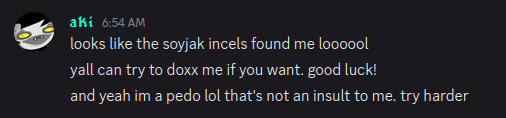 Usernames: 420depression69, degeneraki420, akianon, akirat420, breadbitch420, birdman420, pikachuslayer1
