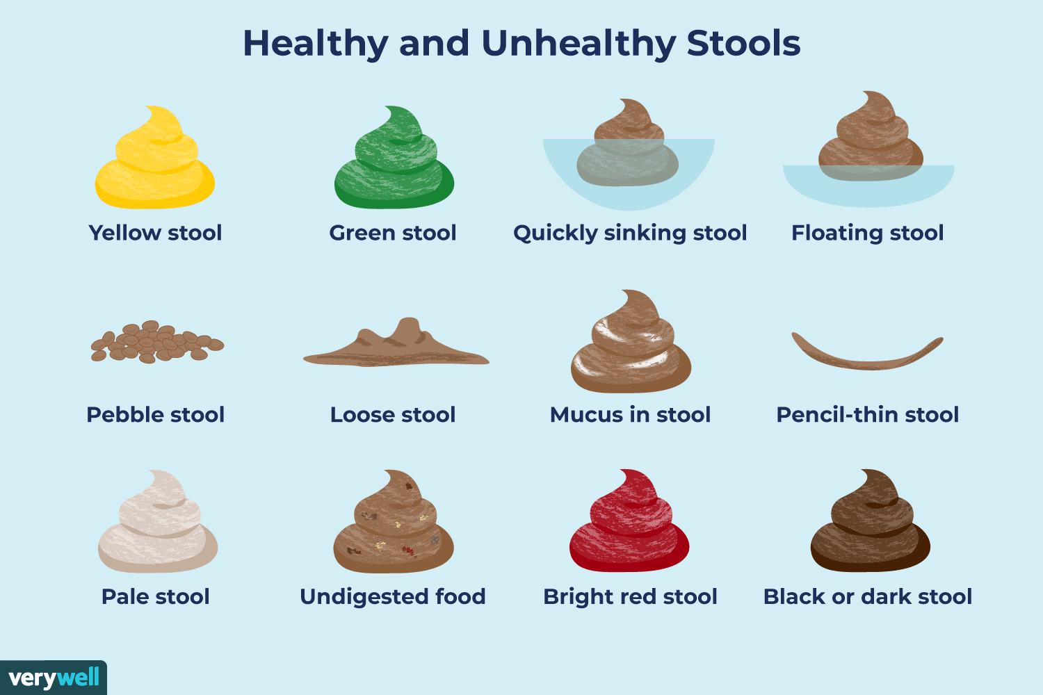 >blak or dark stoolPROS: It's thick and hard like a rock, perfect for holding in your hand when trying to summon the poop fairy. This also makes it easier to throw.