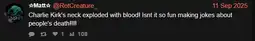 >>15536141>dark humor mfs when you joke about charlie kirk or christianity instead of minorities or women.reddit ahh comment blud 💀💀💀