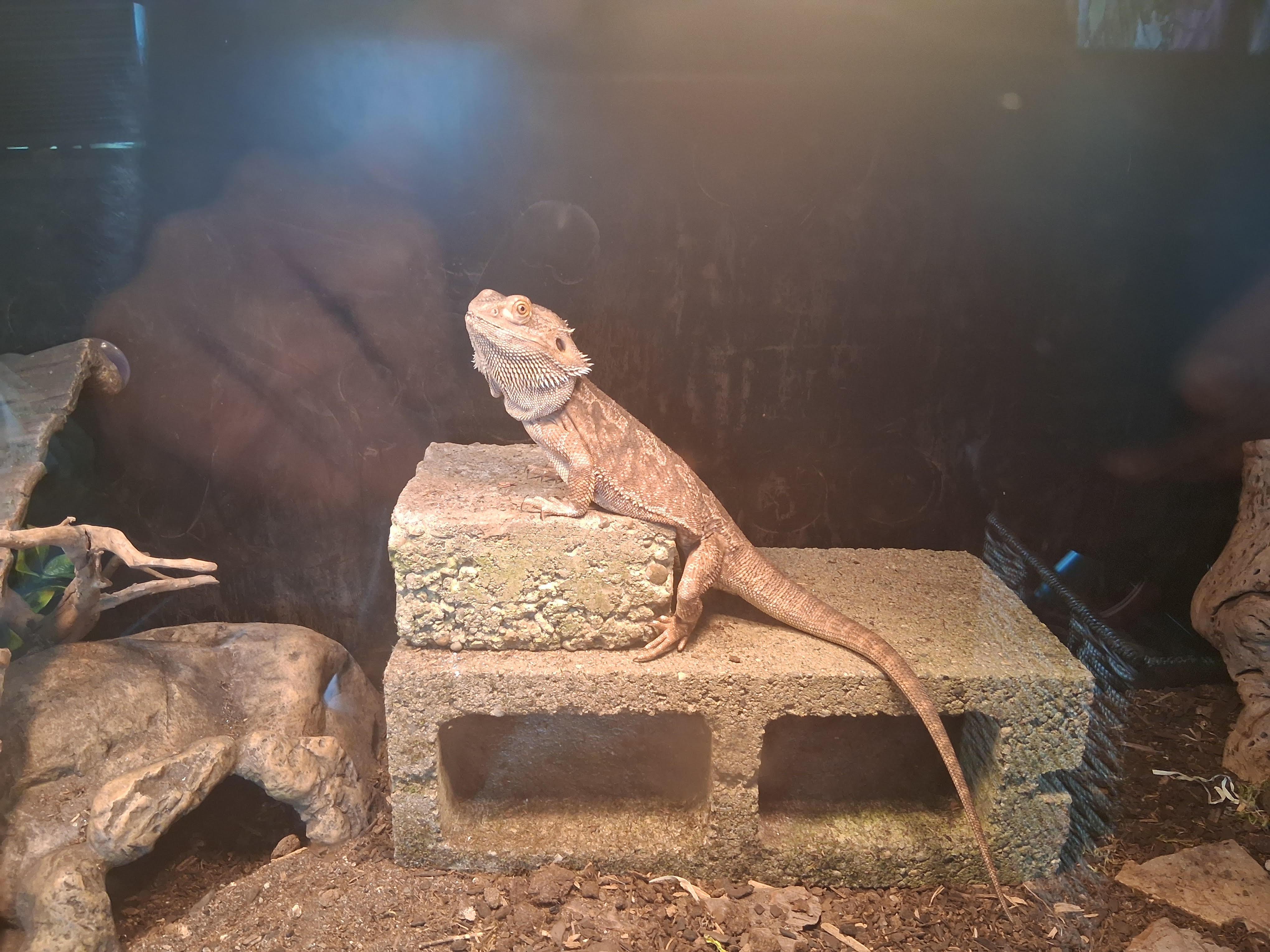 that's not a bearded dragon that's a yellow dog looking at a laptop