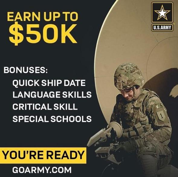 >I found out that new recruits with #quickship get $40,000 just for signing up and completing their service! This is in addition to pay and amazing benefits of the US army!